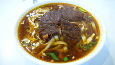 店內的招牌推薦是搶鍋麵,以牛肉搶鍋麵來說,就是直接以牛肉湯來煮麵,而非一般的煮好麵再放到湯內。不過這次我的選擇是牛肉麵。湯頭並非番茄牛肉湯,不過卻相當夠味,麵和肉也是中規中矩。